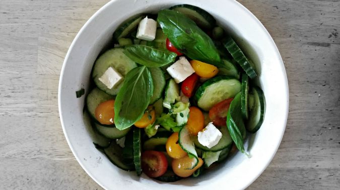 Tomato & Cucumber salad Next Published August 3, 2015 at 3612 × 2032 in Tomato & Cucumber Salad with Queso Blanco & Basil